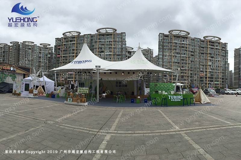 越宏膜結構使用壽命長,并可助有自身維護措施,利用創新的膜結構,能促進商家在戶外促銷活動中更有價值。