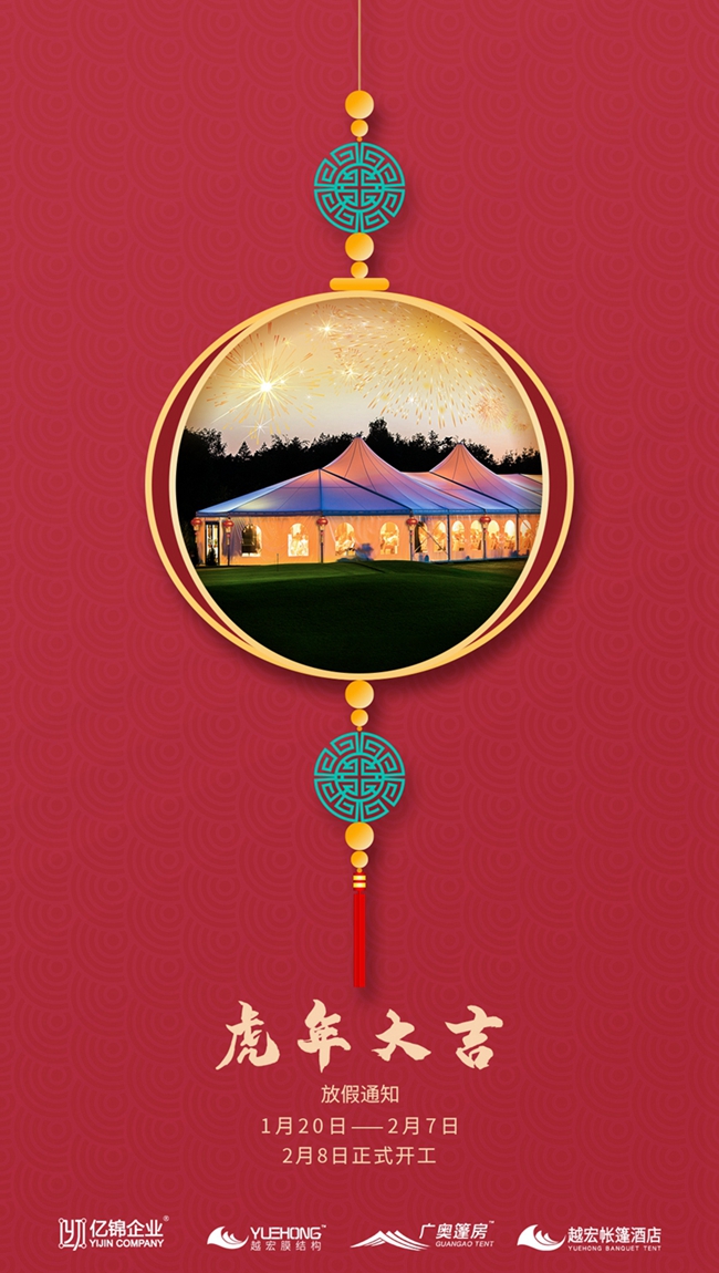 感謝所有的客戶與億錦家人們?cè)谶@一年的陪伴與支持。在2022年新春來臨之際,億錦企業(yè)(旗下越宏膜結(jié)構(gòu))提前祝大家新春快樂,虎年大吉,虎虎生威!